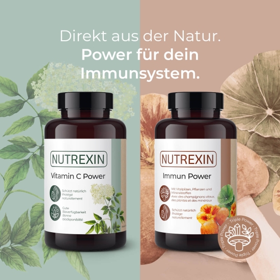 NUTREXIN Immun Power ist eine innovative Kombination aus Pilz- und Pflanzenextrakten sowie Vitaminen und Mineralstoffen, welche unter dem Label Triple Power läuft. Die hochwertigen Inhaltsstoffe machen dieses Produkt zu einem einzigartigen Immun-Stimulator. Der im Produkt enthaltene Vitalpilz Agaricus subrufescens ist der Spitzenreiter unter den Pilzen für das Immunsystem. Er wird unterstützt durch den Maitake- und den Shiitake-Vitalpilz. Beide harmonisieren sämtliche Körpersysteme. Das Zusammenwirken mit den zusätzlichen Inhaltsstoffen Thymian, Kapuzinerkresse und Taigawurzel sowie den Vitaminen C und D bewirkt eine normale Funktion des Immunsystems.